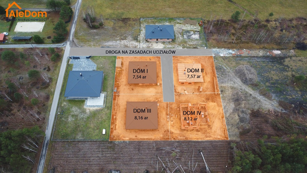 - 7,54ar – DOM I – działka uzbrojona w prąd i wodę